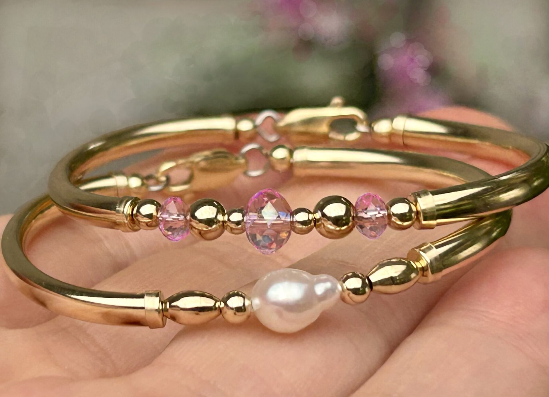 BB004 Baby Rose Pink 14K G/F 925 Silver Bracelet with Swarovski Crystals.