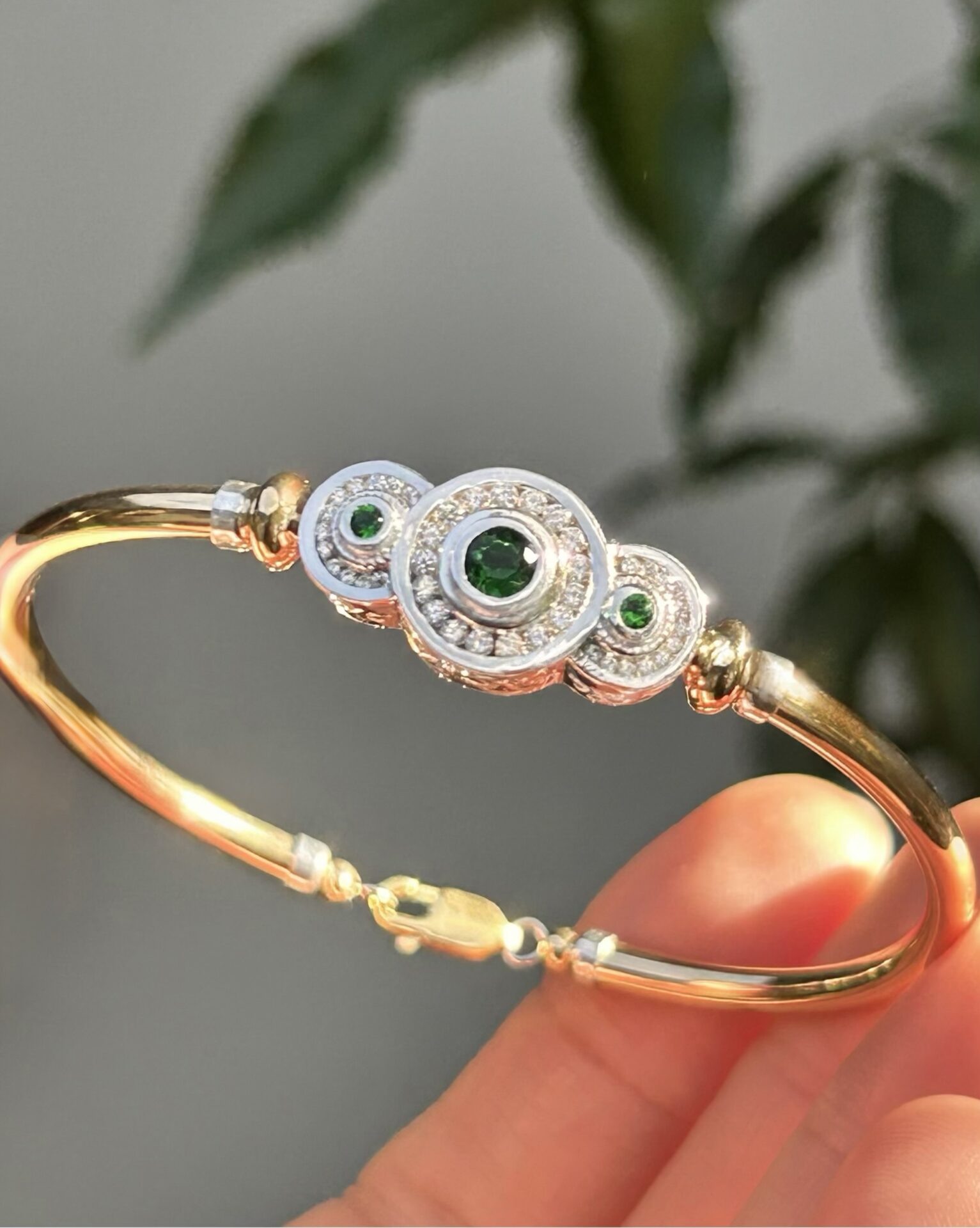GM S005 EM Emerald Tri-Anastasia 14K Gold Filled with 925 Silver Cubic Zirconia Bracelet.
